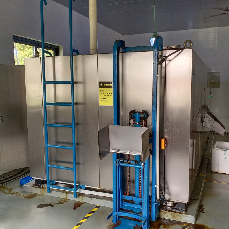 1、上料裝置:通常配套標準120L/240L塑膠垃圾桶使用,用戶只需一鍵按動,即可完成餐廚的提桶上料,其他上料方式可定制,如中大型設備可根據用戶需要,配置自動輸送帶上料,大大減輕人工操作的繁重工作。